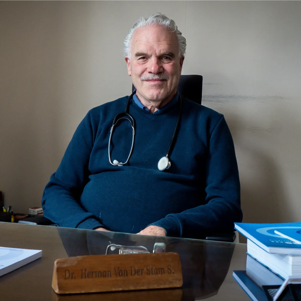 Hola, soy el Dr. Herman Van der Stam, nacido en Ámsterdam, Países Bajos. Estudié medicina en la Universidad de Ámsterdam y me especialicé en la Universidad de Leiden. Llegué a Chile en el año 1989. Inicialmente trabajé para la organización no gubernamental “Médicos sin Fronteras”.